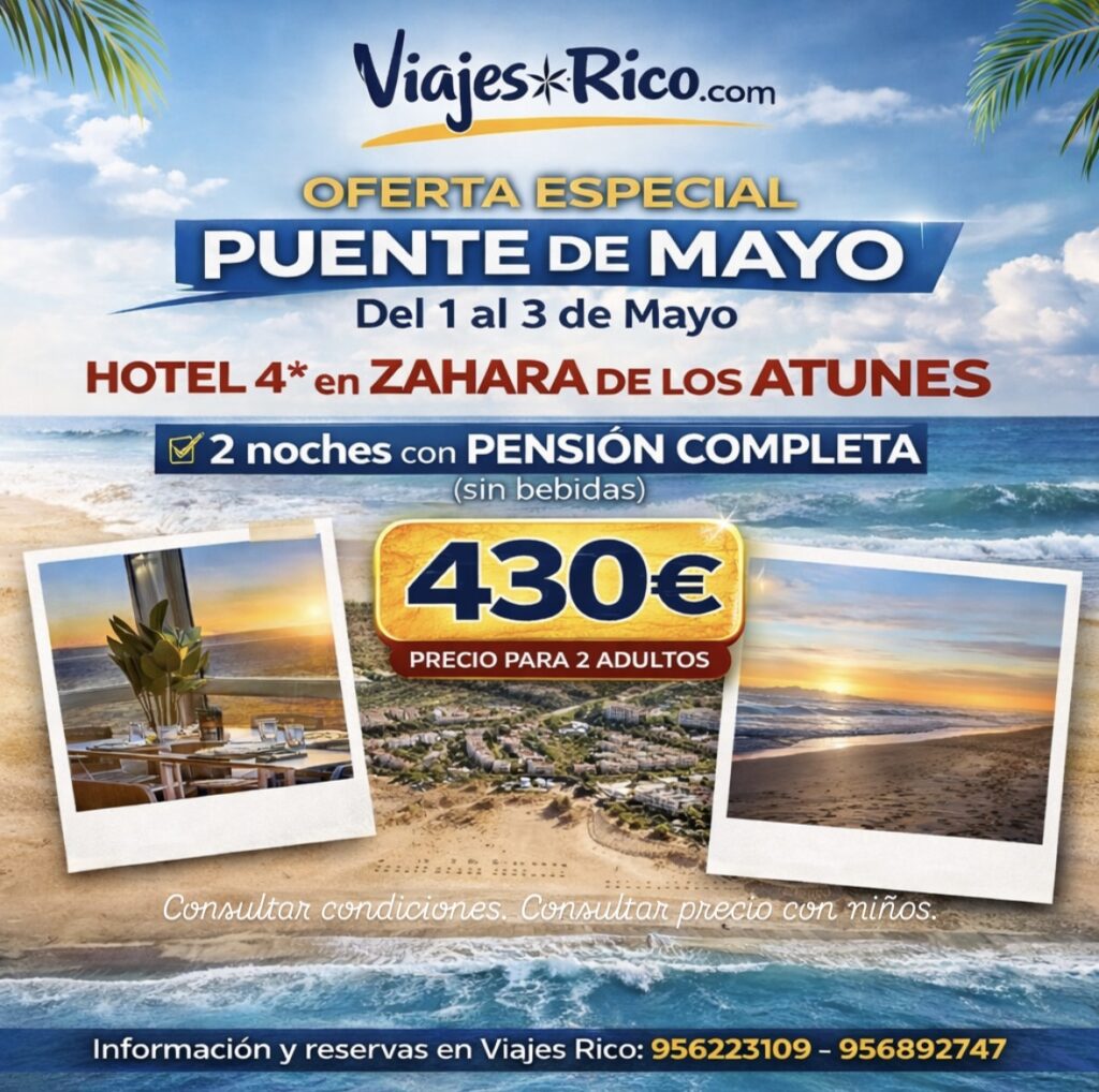 – Cádiz: C/ Ancha, 9. 956223109 . Email: Info@viajesrico.com
